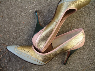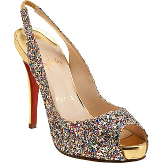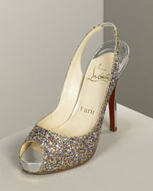I’m sort of debating between these two versions of Mr. Louboutin’s glitter sling-back. The silver is very pretty. But I think it is a little too “cool”. It’s almost too elegant. And if you getting really high glittery heels, subtlety is not really what you are going for.