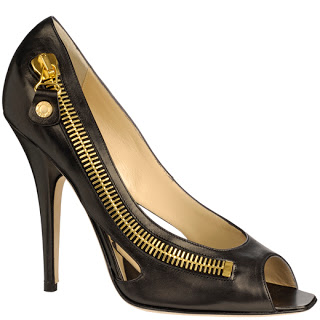 Jimmy Choo’s Cole Metallic Leather peep-toe ($695 online at Jimmy Choo) is quite striking. But I’d probably forget the zipper was there and shred my tights or skirt or something. Choo also did a closed toe heel and a really cool double-zipper flat boot for Fall.