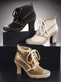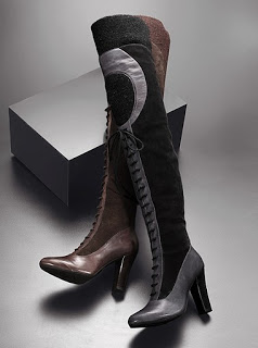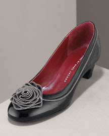 And my favorite use of a zipper are these Marc Jacob pumps. The rose is actually made of a zipper. This comes in red too. I do wish that it had been done on a high heel round toe pump. The style of these are a bit to matronly, if you as me, which contrasts in a negative way to the edgier materials. They’re about $390 at Neiman Marcus.