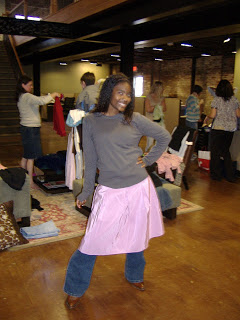 I think this is even better than thrifting. It’s free and you know where the clothes came from. Plus its a fun bonding experience. All the guys in the office thought we were a little silly, but who cares? At the end, all the clothes that are unclaimed get taken off to Goodwill, so we can do a donation too.