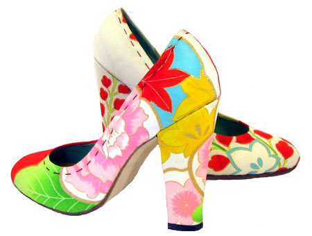 The concept of the company has grown from research and development I conducted during my degree. I was traveling in Japan 4 years ago and came across some tiny shops selling vintage kimono fabrics. These fabrics have already been un-picked and are panels, which lend themselves to shoe patterns. Therefore, I left my clothes in Japan and filled up my case with kimono fabrics and started to experiment with them in my workshop. I love it when I find a really beautiful piece of fabric. As the fabrics are one-offs they cannot be re-produced, so when I find something gorgeous, I have to do it justice by making it into something really wonderful. I go back each year to source more fabrics and be inspired by the beauty of the country.
