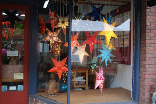 We ended up just making this a day trip. With the drive only being a little over 2.5 hours, we left early and got there just before the festival started up for the day. Not only were there a ton of vendors but we went to our favorite stores too. Plus the Asheville style of window shopping is fun. I love this display of star lanterns.