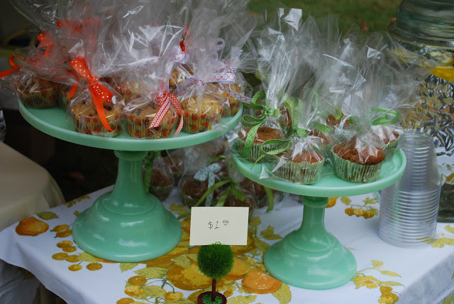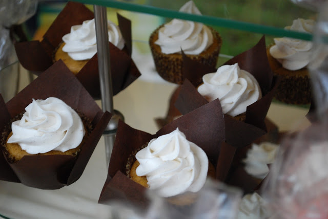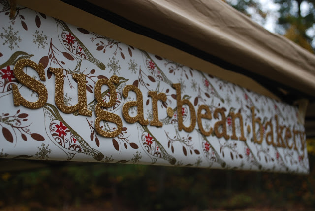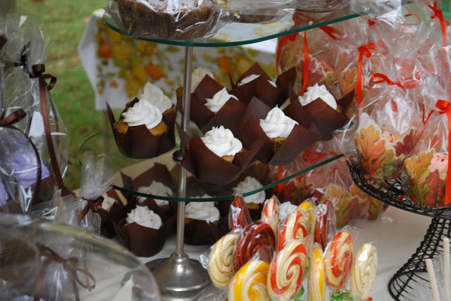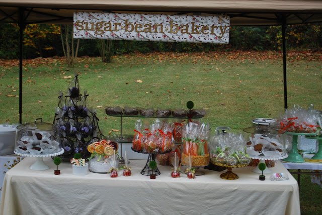 In the Spring I did a booth for my bakery, Sugar Bean Bakery, and this past weekend was the Fall event. Spring was all pinks and yellows and mint green but Fall calls for a different color scheme. So I went with orange, creme, gold, dark brown and green. This leads to new signage, vintage tablecloths and matching cake stands. And the flavors included cinnamon, pumpkin, walnuts and nutmeg.