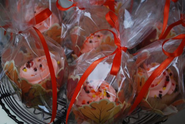 Vanilla cupcakes with autumn leaves