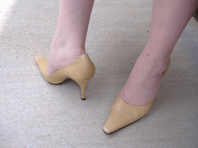 But when you look down at your feet and say “I don’t think you look good anymore”, it’s time for them to go. Maybe they are beat up beyond repair or damaged or, in the case of these Nine West camel heels, they just don’t look “right” anymore.