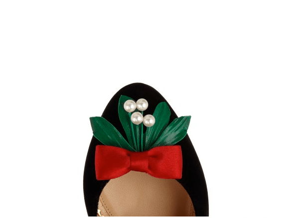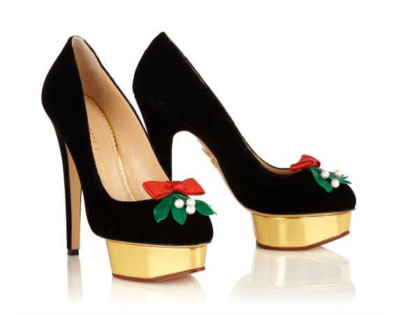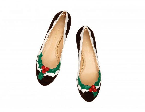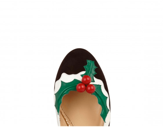 Her Christmas collection even includes a Christmas Pudding clutch, Jingle Bell ankle strap heels and glitter kitty flats. It’s too much goodness!