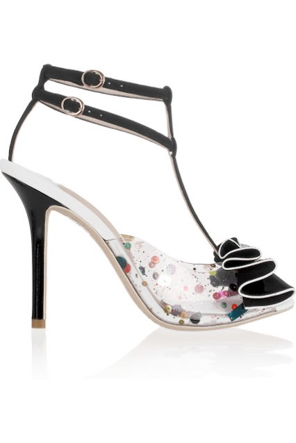 Her first designs were bright and bold and I was expecting to see her gain more coverage. I’m excited to say that she continues to delight with here designs out for Spring and Summer. I’m especially smitten with her ruffle-bow and sequin-bedecked PVC “Lana” t-straps.